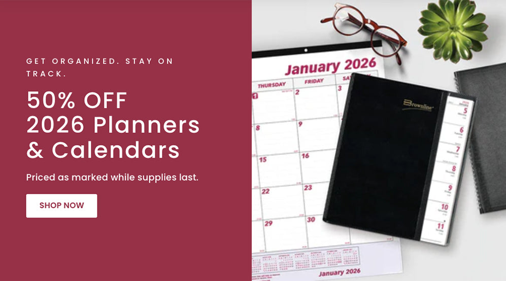*50% Off, 2026 Planners and Calendars. Price as marked, while supplies last. This promotion cannot be applied to previously placed orders and is only valid on orders placed on Brownline Canada.